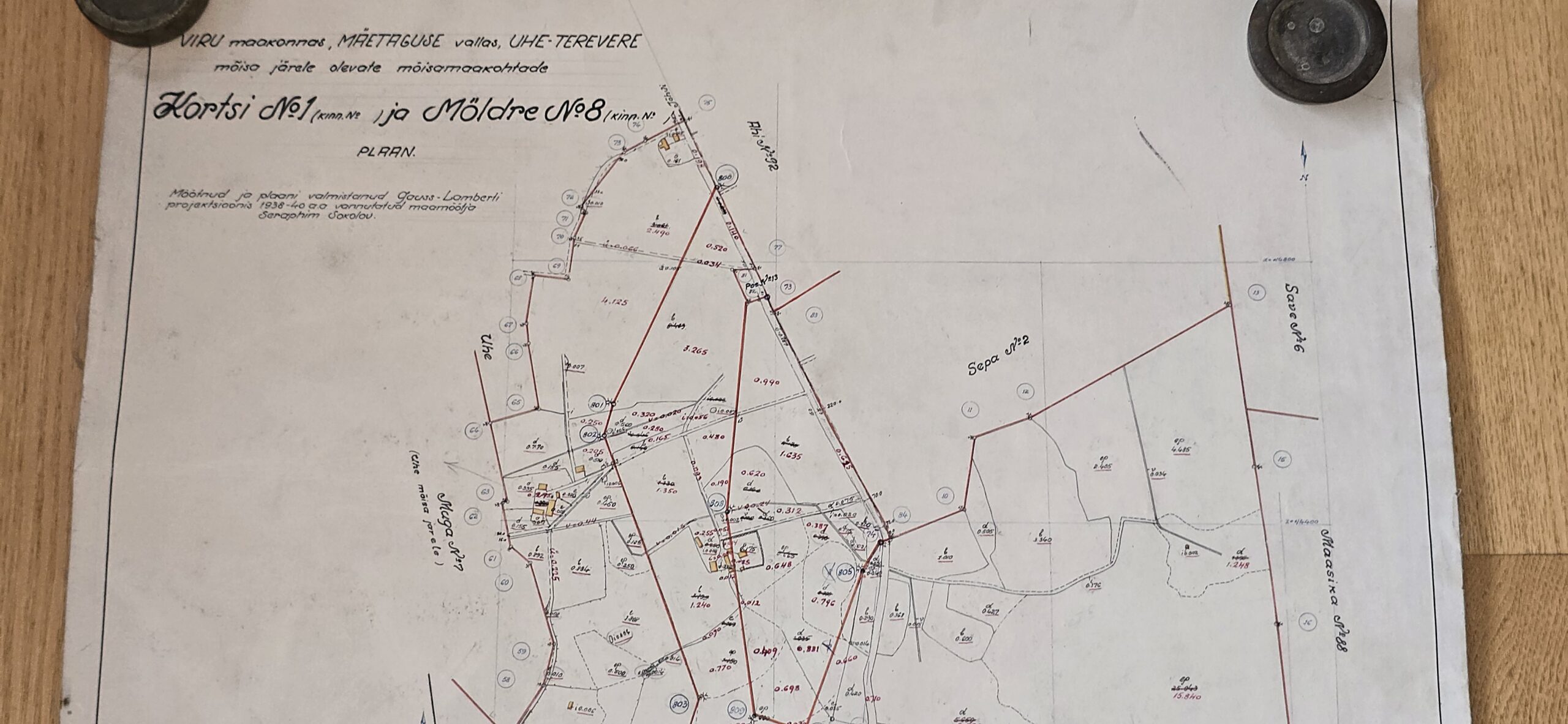 KORTSI ja MÖLDRE kinnistute plaan, Mäetaguse vald, Virumaa, 1940. a