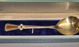 Varasem Tln. Juveelitehase emailidega hõbedast serveerimislusikas, pikkus 17 cm.